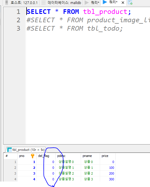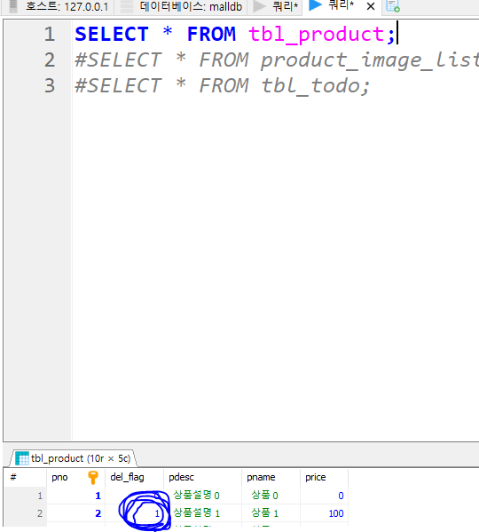// p.delFlag = false는 삭제되지 않은 상품만 가져오도록 필터링합니다.