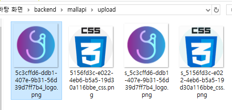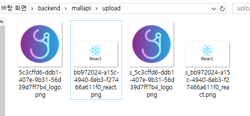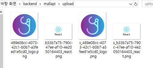 * 업로드 폴더를 살펴보면 XXX_logo.png 파일과 썸네일 파일은 삭제되고 기존의 XXX _react.png 파일과 새로운 파일이 추가된 것을 확인할 수 있다.