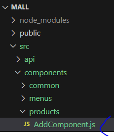 * AddPage 컴포넌트에서 실제 화면의 내용을 구성하는 작업은 components 폴더에 products 폴더를 생성하고 AddComponent.js를 작성해서 진행한다.