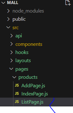 * pages/products 폴더의 ListPage에 ListComponent를 추가한다.