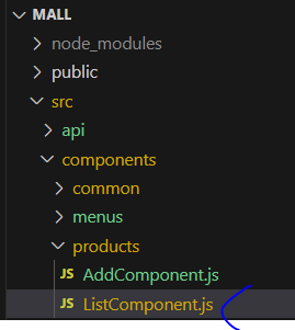 * 실제 목록 화면 내용을 보여줄 ListComponent를 components/products/ 폴더에 추가한다.