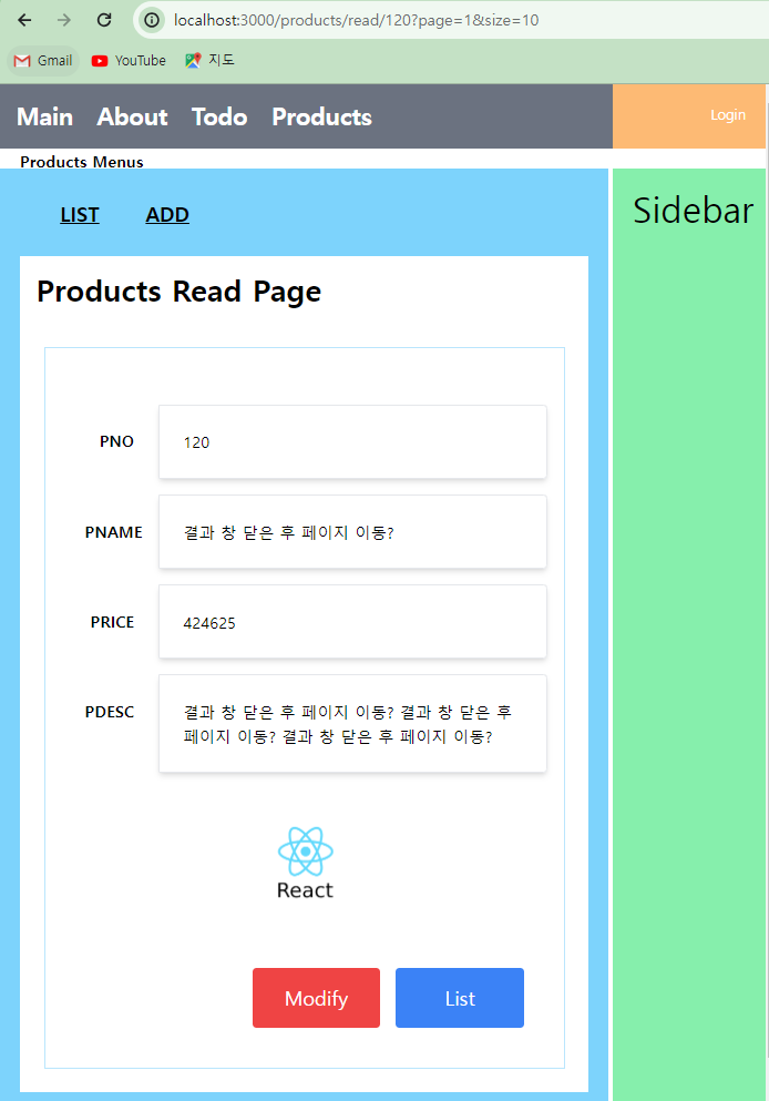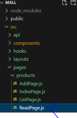 * 조회 페이지는 pages/products/ReadPage.js로 작성한다.