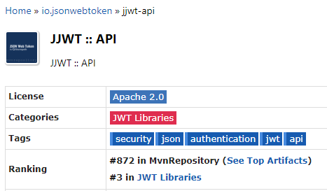 https://mvnrepository.com/artifact/io.jsonwebtoken/jjwt-api