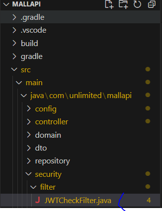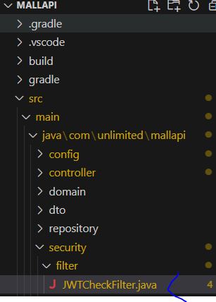* 프로젝트의 security 패키지에 filter 패키지를 추가하고 JWTCheckFilter 클래스를 추가한다.