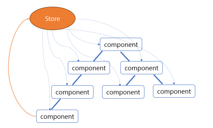 * 스토어는 마치 집안에 있는 금고와 같아서 집안 구성원(컴포넌트)이 함께 사용하는 메모리 공간이다. 따라서 애플리케이션에는 하나의 스토어를 지정해서 사용하게 된다.