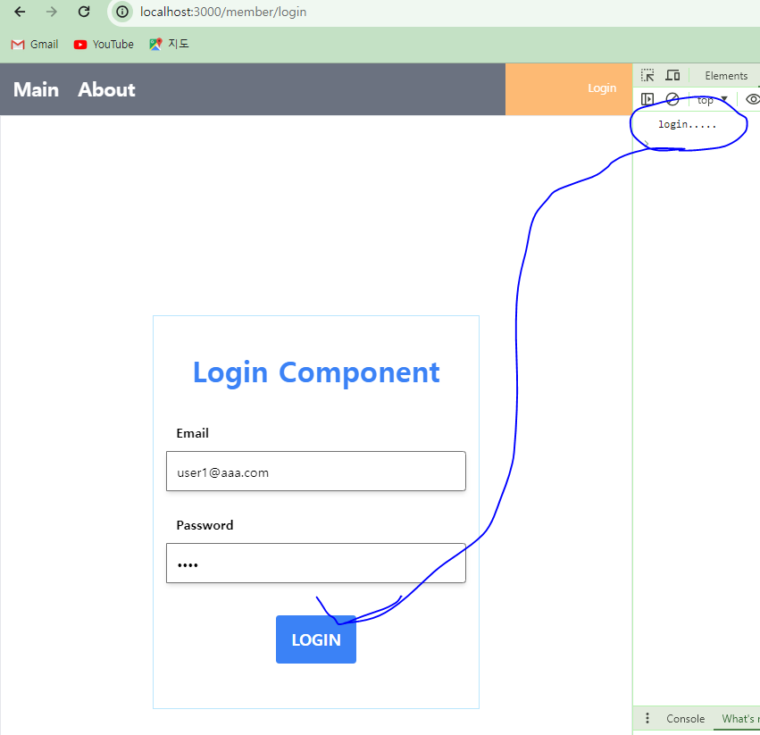 * LoginComponent에 이벤트 처리를 위한 함수를 추가하고, 버튼과 연결한다.