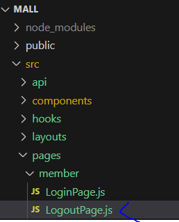 * pages/member/LogoutPage.js를 작성하고 components/member/LogoutComponent.js를 작성한다.