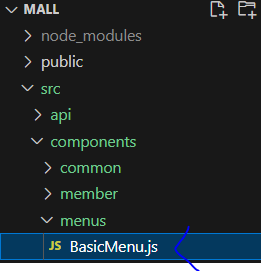* components 폴더의 BasicMenu 에서는 화면 상단의 메뉴에서 로그인된 상황에서는 로그아웃을 할 수 있도록 링크를 추가한다.