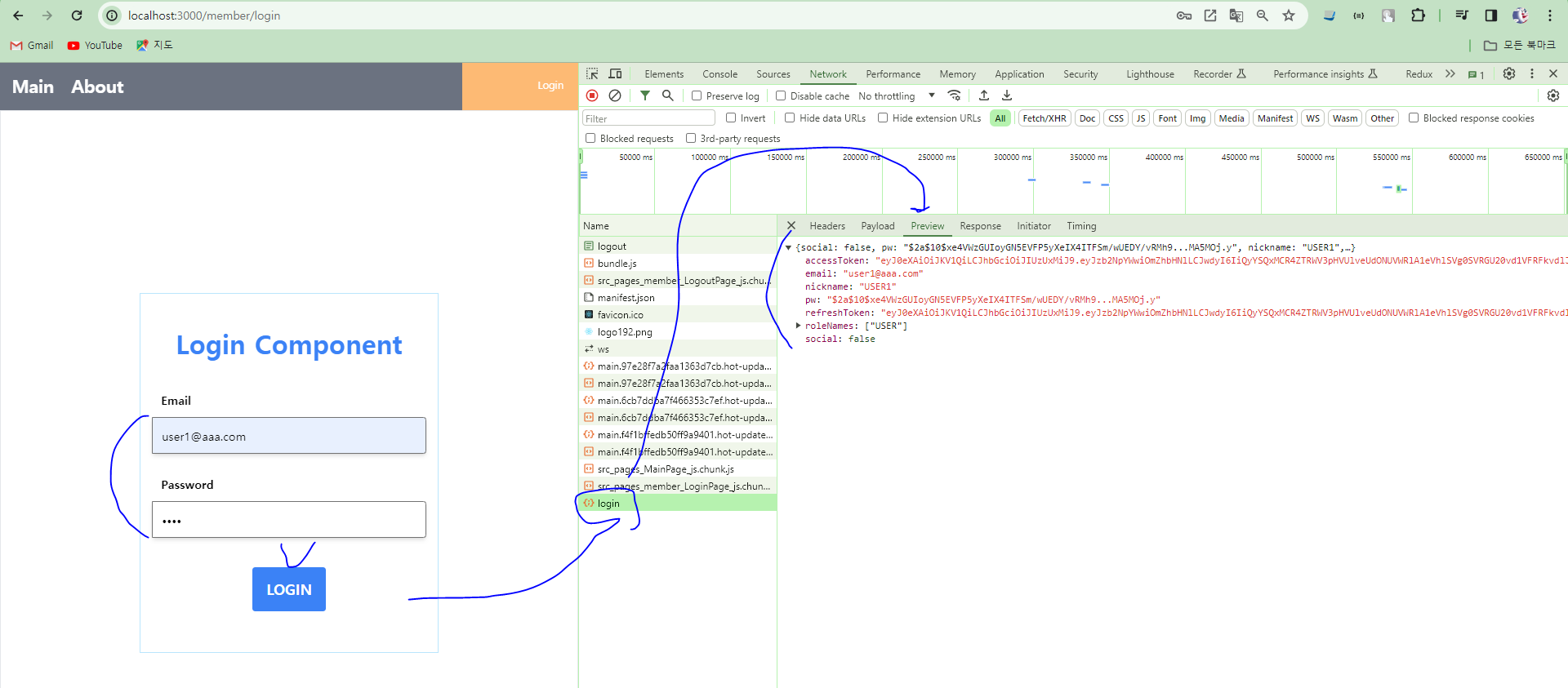 * 정상적으로 로그인이 처리되면 LoginComponent에서는 아래와 같은 로그를 출력한다.