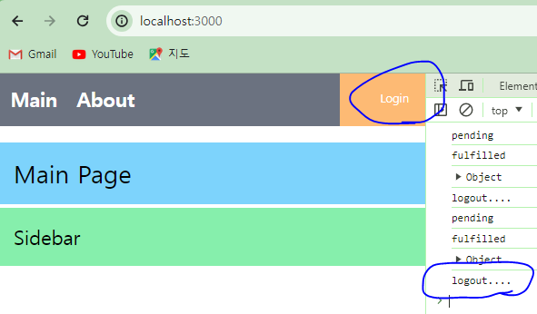 * 로그아웃은 비동기 호출이 아니라 loginSlice의 logout()을 그대로 활용할 수 있다. 비동기 처리가 아니기 때문에 로그아웃 처리 후 / 경로로 이동하도록 구성한다.