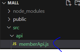 * API 서버와의 통신을 위해 프로젝트 내에 api 폴더 내에 memberApi.js 파일을 추가한다.