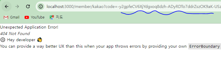 export default memberRouter;* 브라우저에서 다시 로그인을 시도하면 아래와 같이 전달된 code 값이 출력되는 것을 확인할 수 있다.