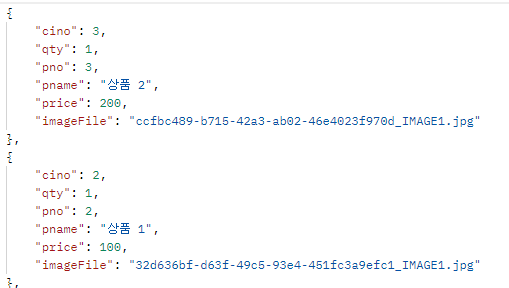 * 장바구니는 시큐리티와 같이 접목되기 때문에 각 기능에 대해서 테스트를 반드시 실행해서 동작에 문제가 없는지 확인한 후에 리액트 개발을 이어가야만 한다.