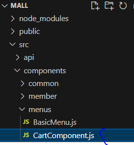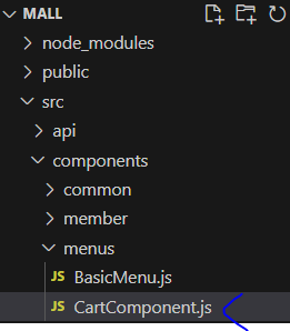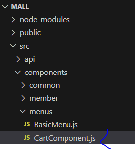 * 프로젝트 내 components/menus 폴더에 CartComponent.js 파일을 추가한다.