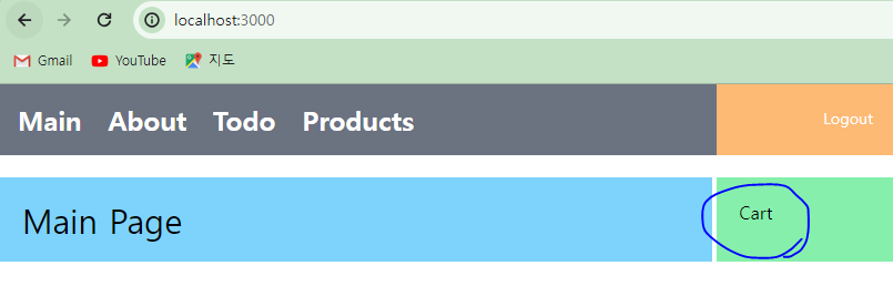 * 브라우저를 통해서 Sidebar 영역에 CartComponent가 출력되는지를 확인한다.