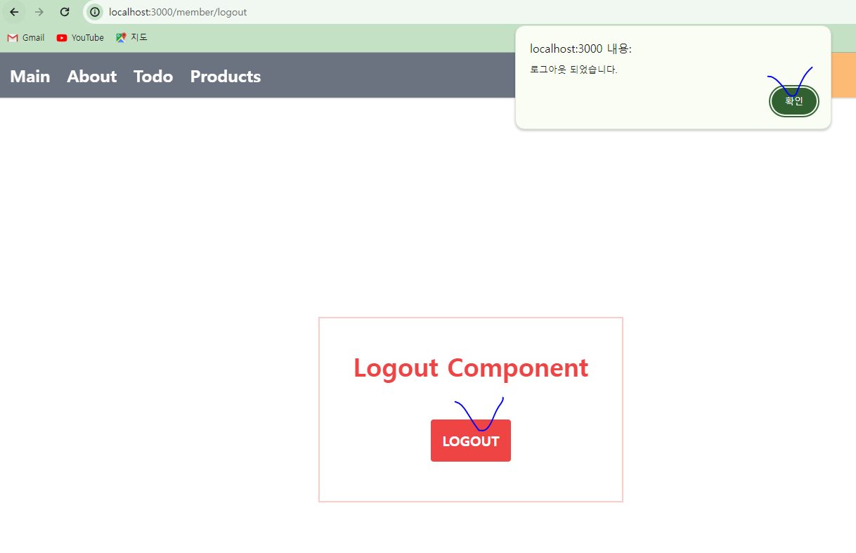* 상단의 메뉴를 담당하는 components/menus의 BasicMenu 컴포넌트는 리덕스 툴킷을 이용했으므로 이를 useCustomLogin으로 변경해서 리코일을 이용한다.