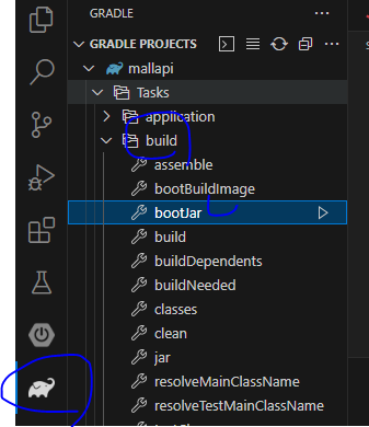 server.port=5000* API 서버 프로젝트에서는 Gradle의 bootJar를 실행한다. 실행 후에는 프로젝트의 build/libs 폴더와 함께 mallapi...jar 파일이 생성된 것을 확인할 수 있다.
