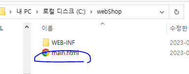 * 그리고 첫 번째 톰캣 실행시 사용한 main.html을 복사하여 C://webShop에 붙여 넣는다.