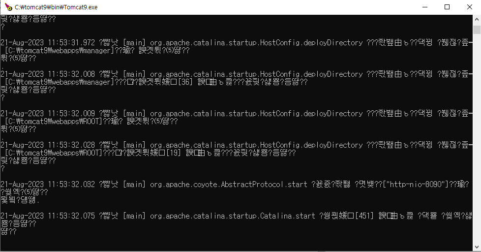 - bin 디렉터리의 Tomcat9.exe를 더블클릭해 실행한다.