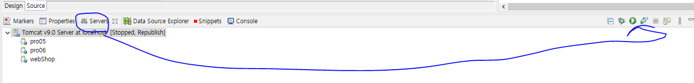 4. 이클립스 하단의 Servers 탭을 보면 다음과 같이 표시된다.
