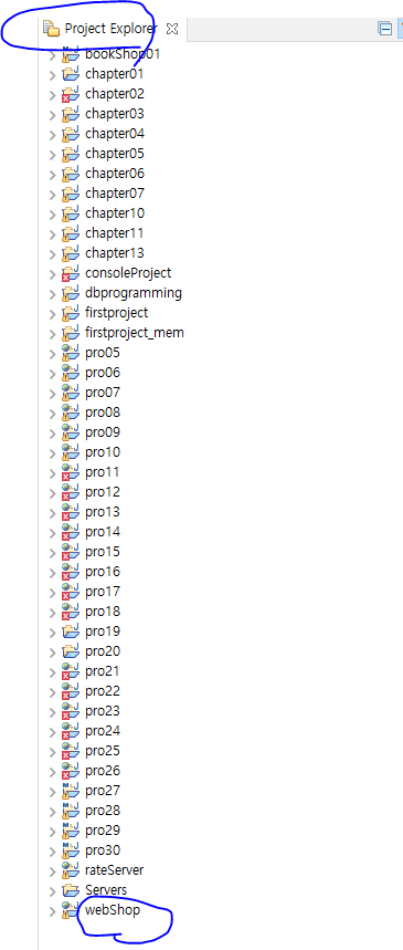 (5) Project Explorer에 webShop 프로젝트가 생성된 것을 확인할 수 있다.