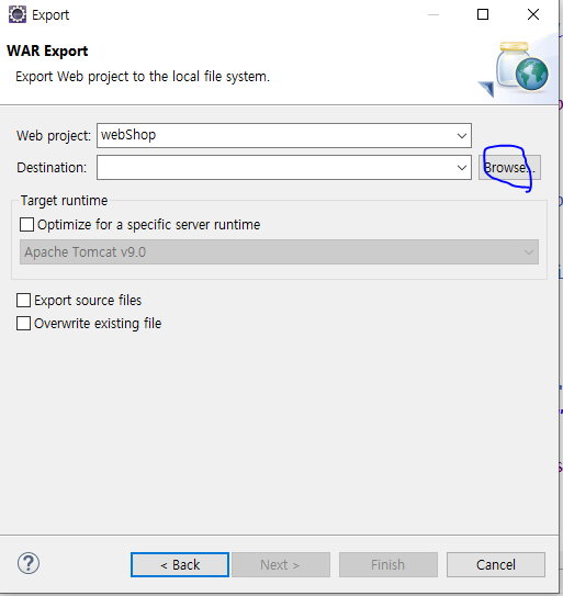 (3) Browse...를 클릭해 war 파일을 저장할 위치를 지정한다.