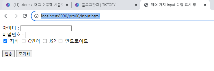 4. 브라우저에서 http://localhost:8090/pro06/input.html로 요청한다.