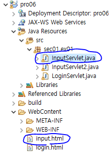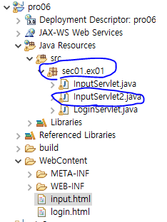 1. 다음과 같이 input.html을 추가하고 InputServlet 클래스를 새로 만든다.