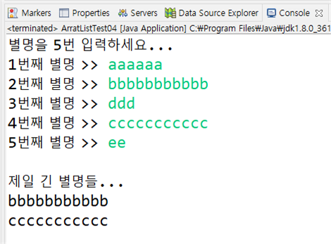 * 문제1) 5명의 별명을 입력받아 ArrayList에 추가한 후 이들 중