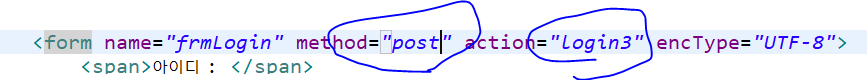 2. login.html은 앞에서 생성한 파일을 편집해서, <form> 태그의 속성 method를 post로, action을 login3으로 수정한다.