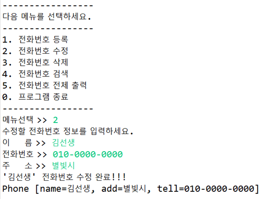 System.out.println("수정할 전화번호 정보를 입력하세요.");