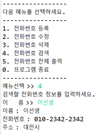 System.out.println("검색할 전화번호 정보를 입력하세요.");
