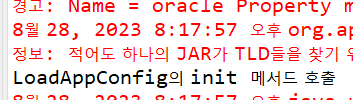 6. 브라우저에서 /loadConfig로 최초 요청 시 기다리지 않고 바로 공통 메뉴를 출력한다. 또한 톰캣을 실행하면 서블릿의 init() 메서드를 호출하므로 로그에 메시지가 출력된다.