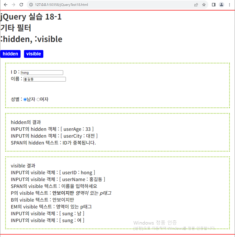 //// str2 += "input의 visible 객체" + $(this).val() + "<br />";