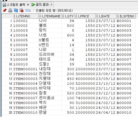 SELECT * FROM ITEM; -- 자재 테이블