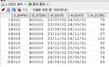 SELECT * FROM WORK; -- 근무 테이블