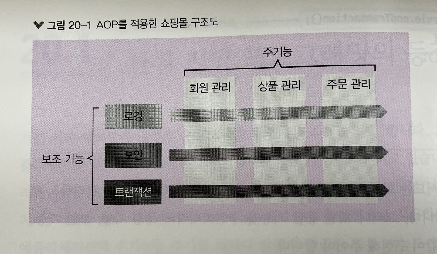 * AOP는 메서드 안의 주기능과 보조 기능을 분리한 후 선택적으로 메서드에 적용해서 사용한다는 개념이다. AOP를 사용하면 전체 코드에 흩어져 있는 보조 기능을 하나의 장소에 모아서 관리할 수 있다. 또 보조 기능을 자신이 원하는 주기능에 선택적으로 적용할 수 있어 코드가 단순해지고 가독성도 향상된다.