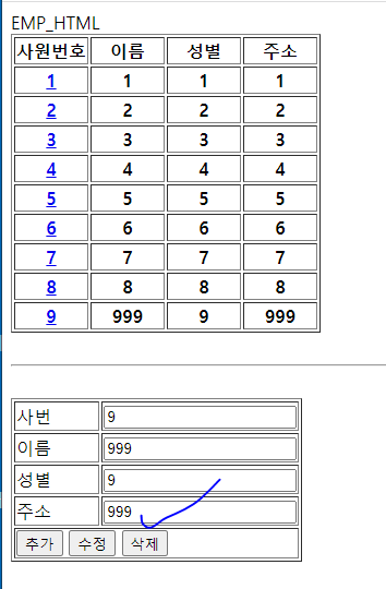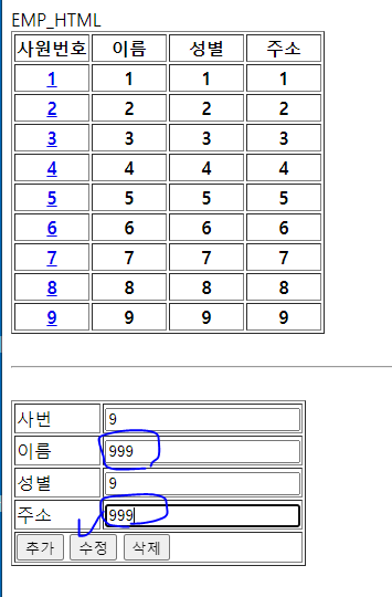 var cnt = de.update(e_id, e_name, gen, addr);