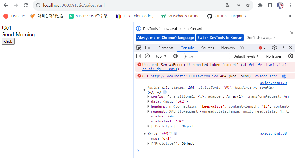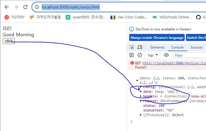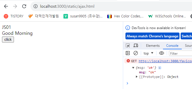 ajax는 페이지의 일부만 로드하는 기술입니다. 오늘은 nodejs ajax를 사용하는 방법에 대해 알아보도록 하겠습니다. 1. html 코드 작성 아래와 같이 html 코드를 작성해 주세요. ajaxbutton 2. 서버 코드 cons