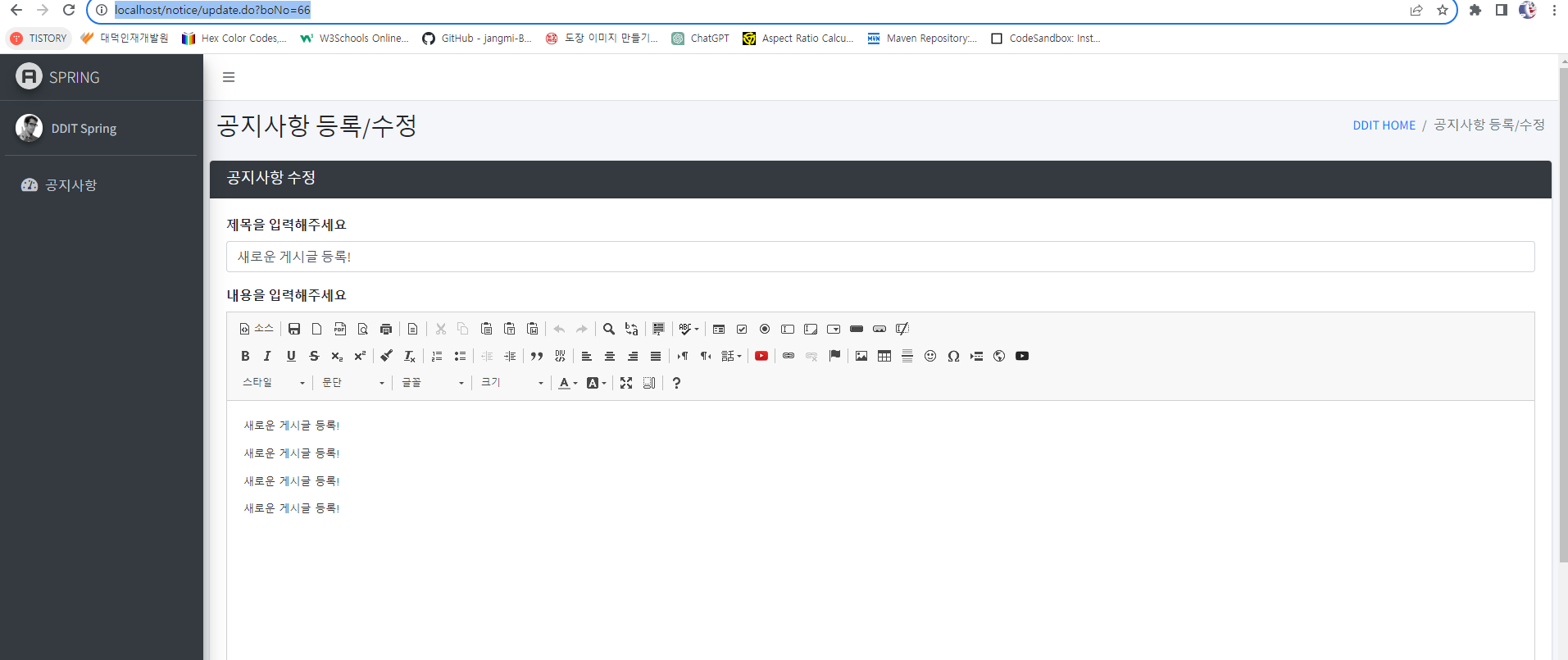 * - 게시판 수정 화면 만들기 (noticeboard/form.jsp)