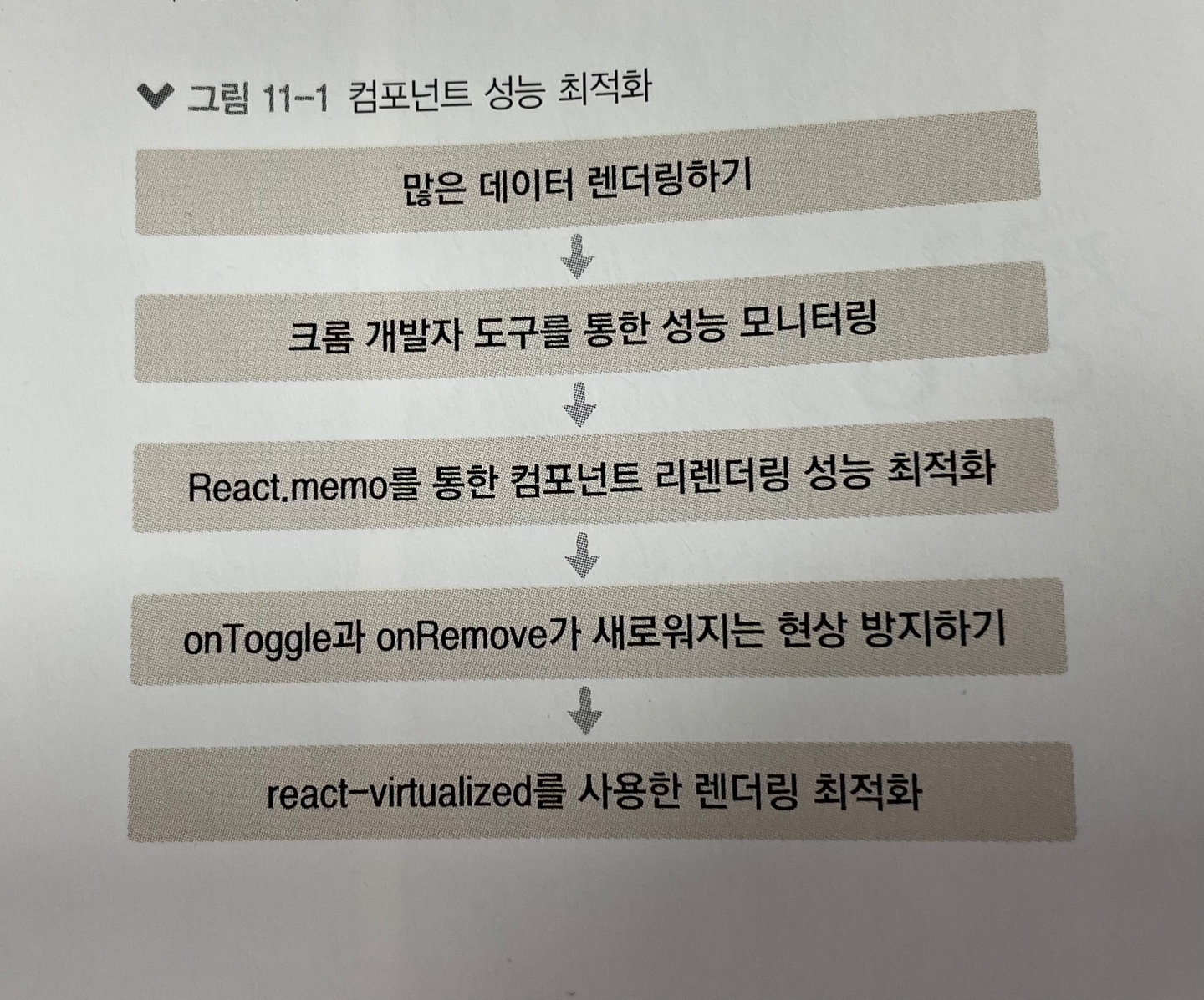* 이럴 때는 컴포넌트 리렌더링 성능을 최적화해 주는 작업을 해 주어야 한다. 즉, 리렌더링이 불필요할 때는 리렌더링을 방지해 주어야 하는데, 어떻게 방지하는지 알아보도록 하자.