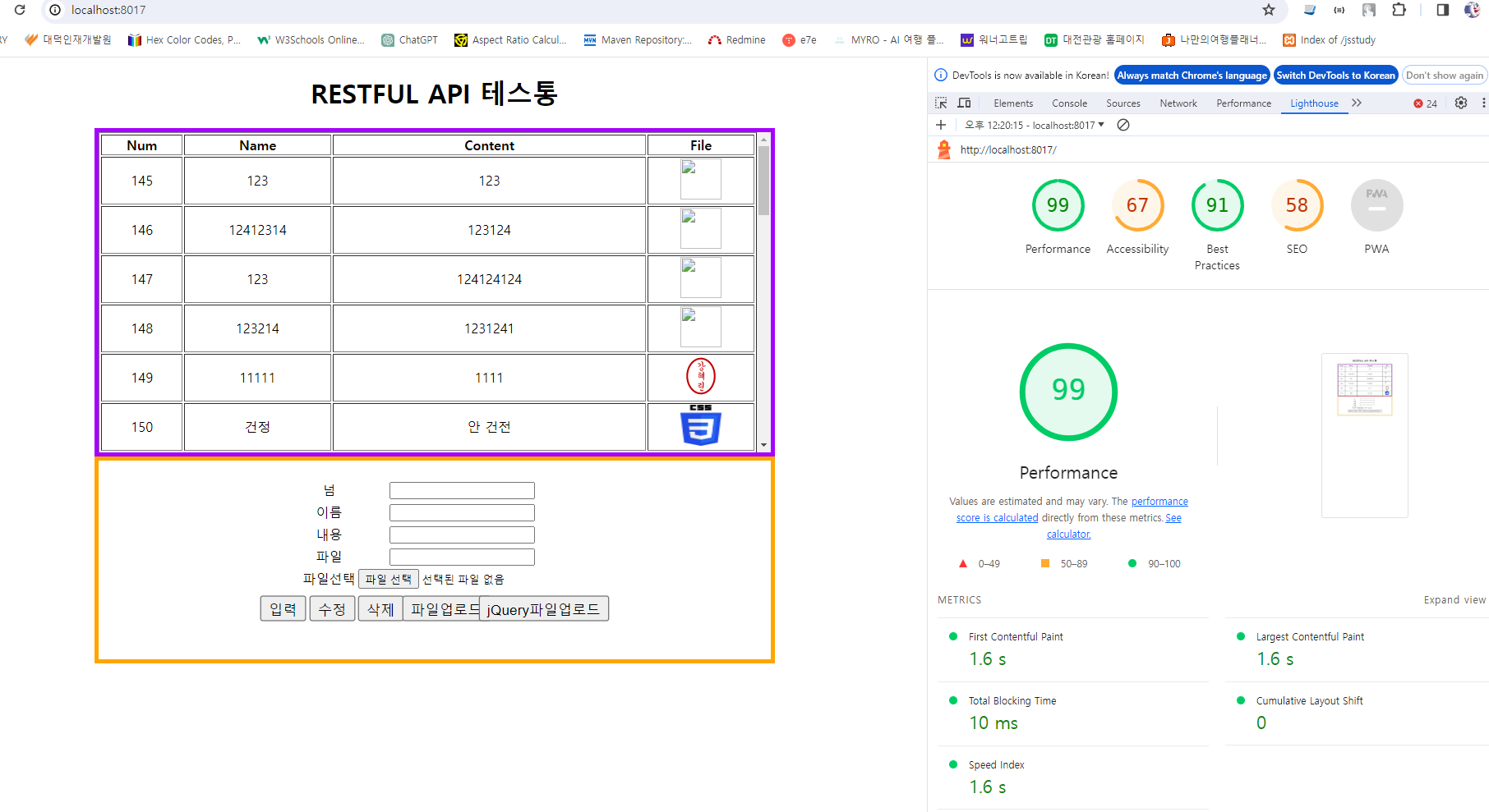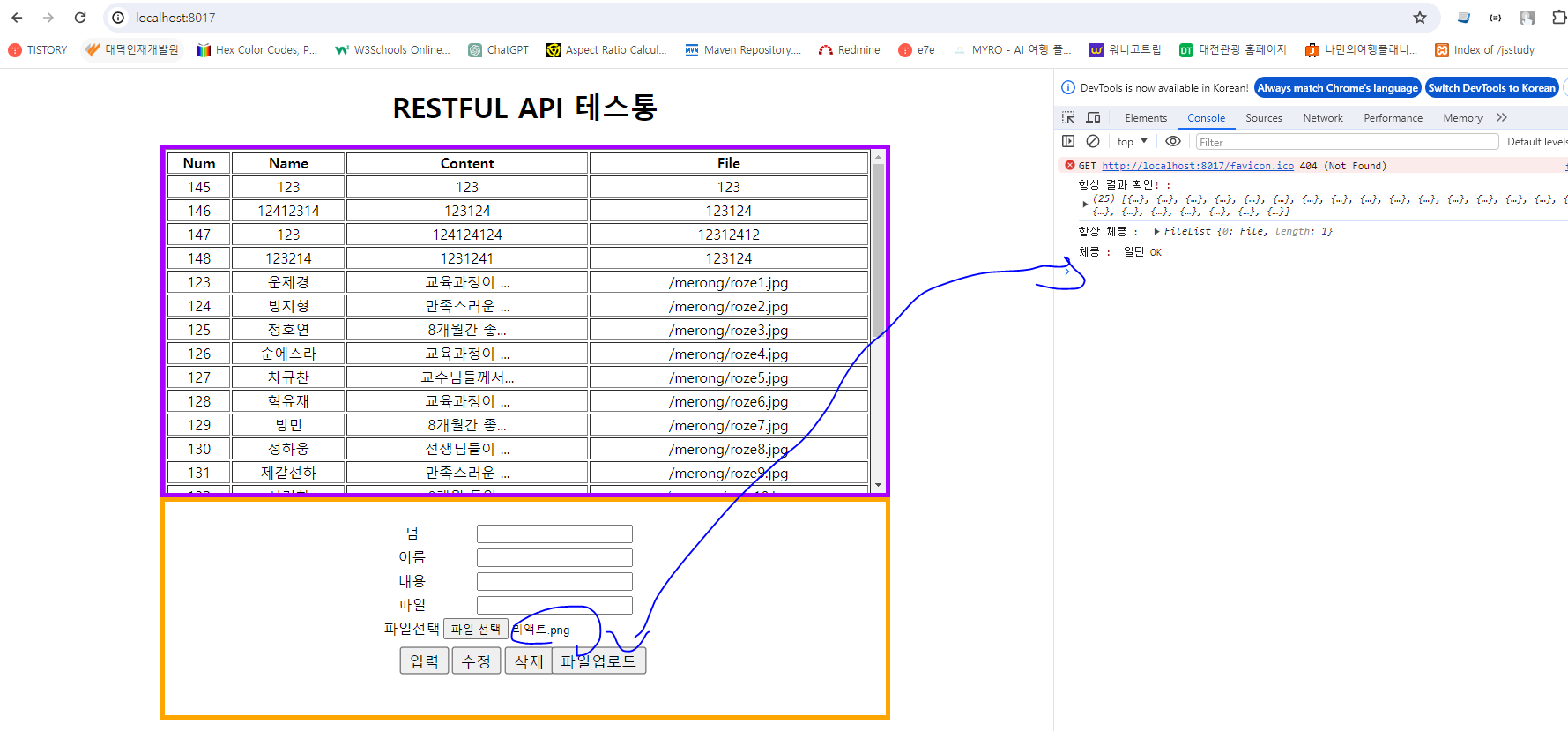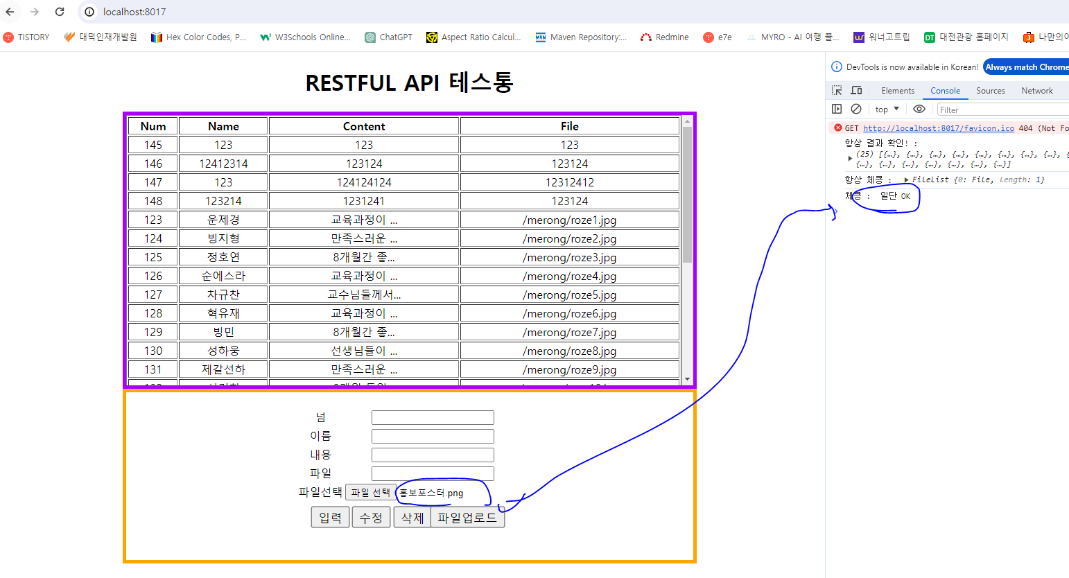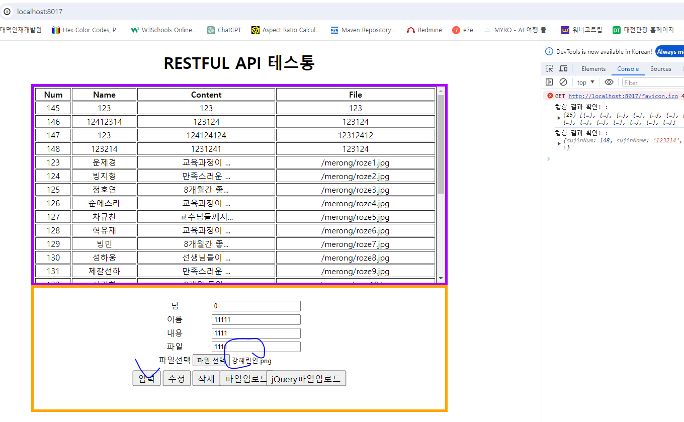 <h1>RESTFUL API 테스통</h1>