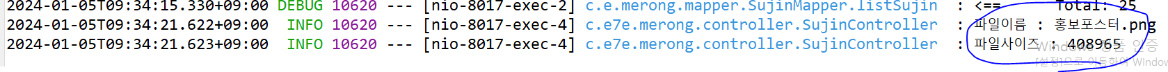 log.debug("체킁 sujinVO {}", sujinVO); // 객체가 온다는 표시로 {}. ,를 구분자로 사용