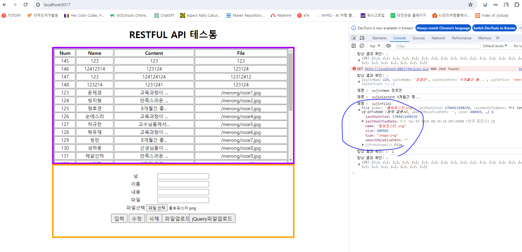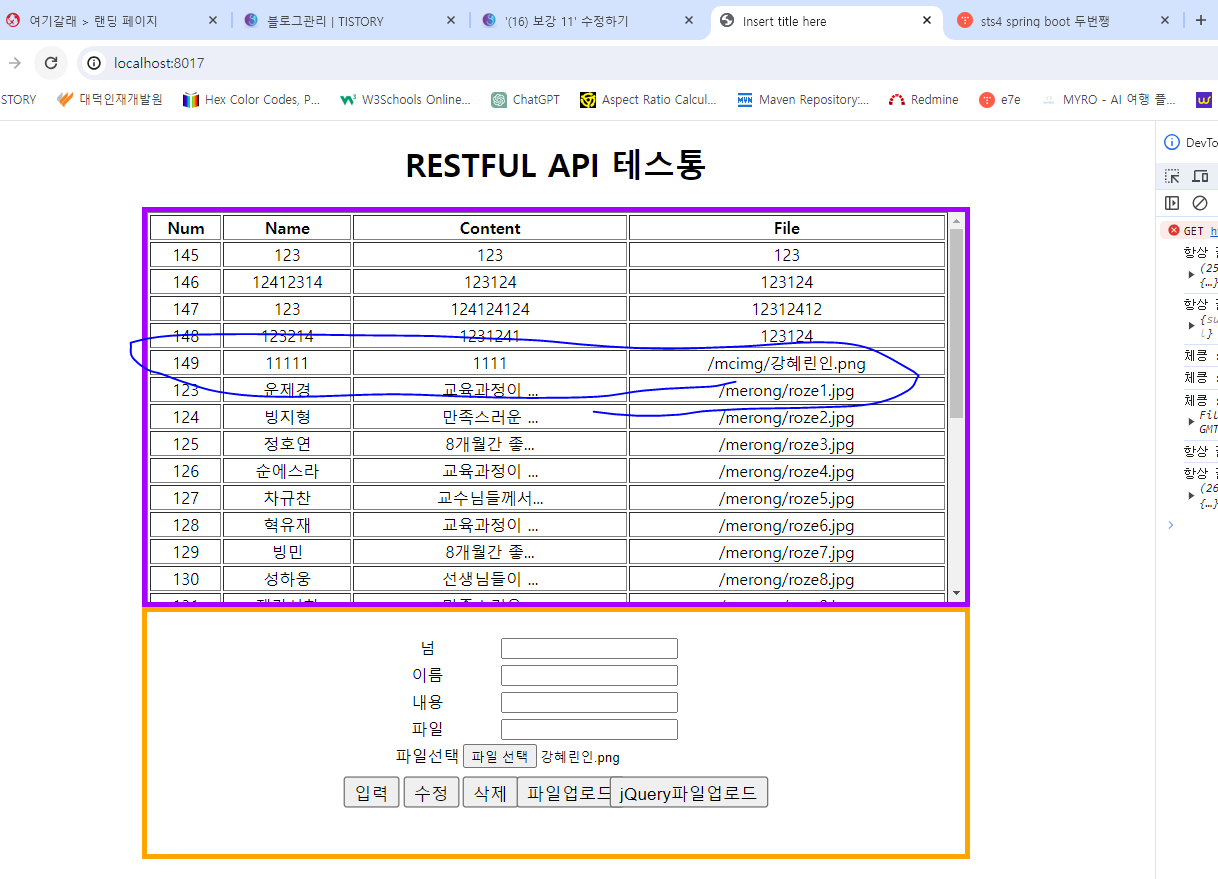 // post로 insert 1개 row(sujin), 파일 전송용