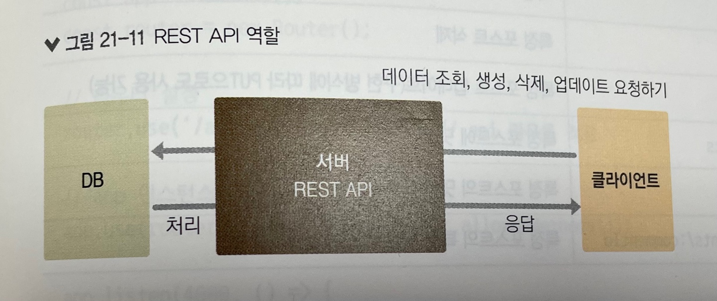 * 웹 애플리케이션을 만들려면 데이터베이스에 정보를 입력하고 읽어 와야 한다. 그런데 웹 브라우저에서 데이터베이스에 직접 접속하여 데이터를 변경한다면 보안상 문제가 되지 않을까? 그래서 REST API를 만들어서 사용한다.
