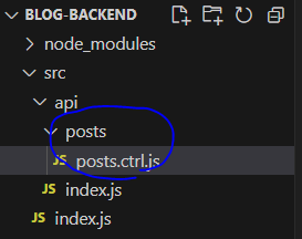 * 그리고 posts 경로에 posts.ctrl.js 파일을 만든 후 주석을 참고하면서 다음 코드를 입력해 보자.