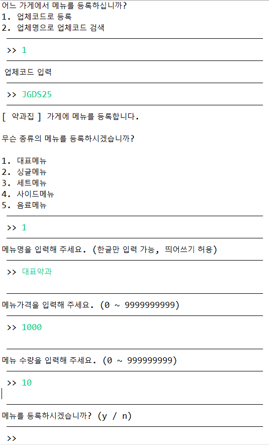 System.out.println("어느 가게에서 메뉴를 등록하십니까?");
