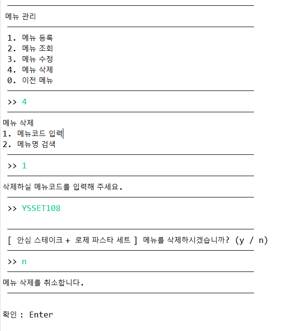 System.out.println("메뉴 삭제가 완료되었습니다!");