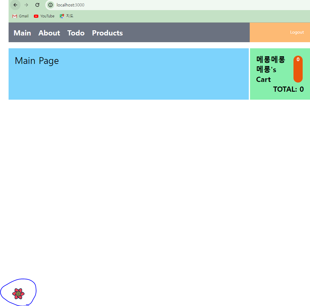 export default App;* 개발도구와 관련해서 initialsOpen 속성은 말 그대로 애플리케이션 구동 시에 개발도구를 오픈한 상태에서 시작하는 것을 지정한다(브라우저 개발자 도구의 application 메뉴에서 localStorage 항목으로 지정된 값을 이용하므로 나중에 이를 조정할 수 있다). 애플리케이션을 실행하면 아래 같은 화면이 보이고 왼쪽 하단의 close 메뉴를 통해 아이콘만 보이게 된다.