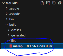 server.port=5000* API 서버 프로젝트에서는 Gradle의 bootJar를 실행한다. 실행 후에는 프로젝트의 build/libs 폴더와 함께 mallapi...jar 파일이 생성된 것을 확인할 수 있다.
